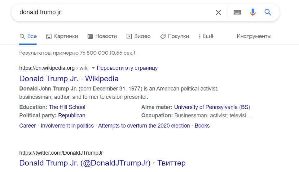 Drugi link na tej stronie z wynikami wyszukiwania Google prowadzi do Twittera.